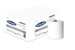 BulkySoft Premium System laponkénti adagolású kéztörlő (MTC), 20 cm, 3 rétegű, hófehér, 150 méter/tekercs, 100% cellulóz, 6 tekercs/doboz