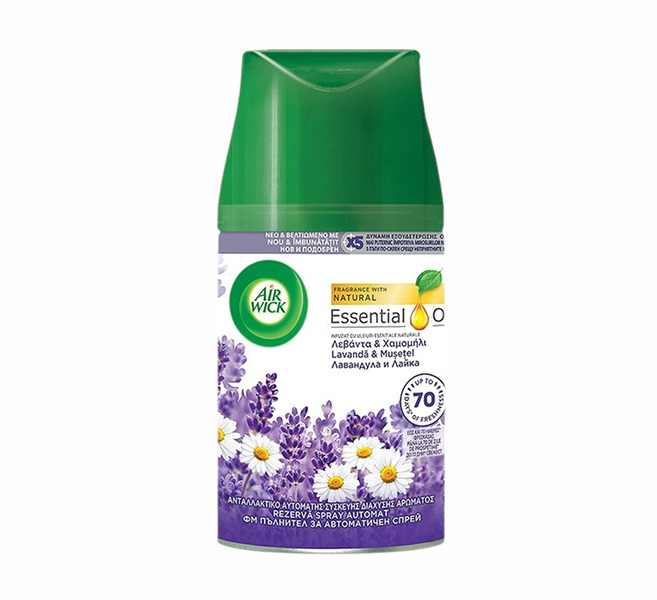 Tegye kellemesebbé a hangulatot az Air Wick Freshmatic automata légfrissítő friss illataival. Az Air Wick Freshmatic automata légfrissítő utántöltőjével biztosíthatja, hogy Freshmatic készüléke folyamatosan friss illattal lássa el a helyiséget, ahol kihelyezte a légfrissítőt. A permet 9, 18 vagy 36 percente kerül a levegőbe, a beállítás függvényében. A beállítás alapján, akár 60 napig is élvezheti a kellemes illatot otthonában.