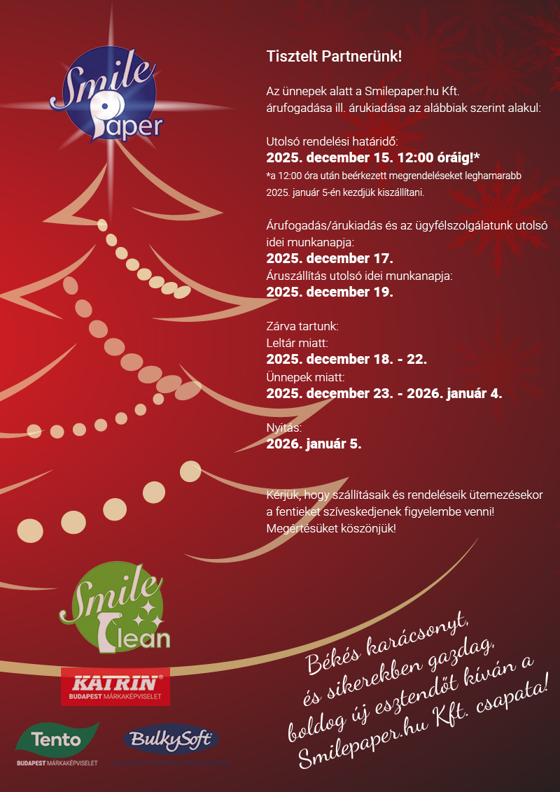 2025. December 18-tól - 2026. január 4-ig zárva tartunk! Nyitás: 2026. január 5. A webáruházban leadható megrendelés minimum összértéke 10.000 Ft+ÁFA (bruttó 12.700 Ft).